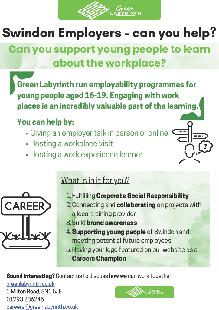 Learners will be signposted to relevant careers fairs in the local area. Green Labyrinth also host their own fair in the spring term. The date for next year is Thursday 5th March 2026!